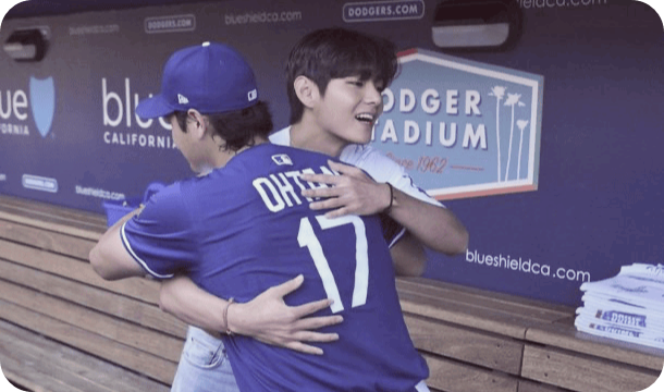 시구 전에 뷔가 더그아웃에 가서 오타니 쇼헤이를 만난 거예요!